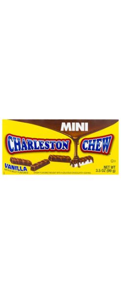 Charleston Mini Chew Box – minkšti, kramtomos tekstūros šokoladiniai saldainiai su karameliniu įdaru, pasižymintys klasikinio „Charleston Chew“ skonio deriniu. Mini formos saldainiai patogūs dalintis, mėgautis kelionėje ar naudoti kaip saldų užkandį bet kuriuo metu. Lengvai kramtomi, saldūs ir nostalgiški – tikra amerikietiškos klasikos užuomina.