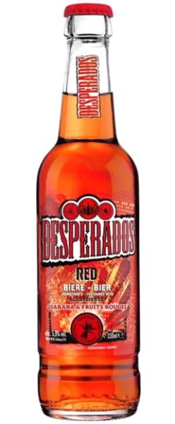 Desperados Red – intensyvaus charakterio alus su tekilos akcentu, papildytas ryškiu energijos ir vaisiškumo deriniu. Šis gėrimas išsiskiria sodresniu profiliu nei klasikinis Desperados, o vyšnių ir guaranos natos suteikia jam išskirtinį, drąsų ir vakarėjišką skonį.
