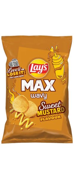 Lay’s MAX Wavy – saldžių garstyčių padažo skonio bulvių traškučiai – ryškaus skonio, bangelėmis pjaustyti traškučiai, pasižymintys intensyvia tekstūra ir saldžiai pikantišku garstyčių profiliu. Stipresnis traškumas ir sodrus prieskonių mišinys suteikia išskirtinę užkandžio patirtį, kuri patiks ieškantiems drąsesnių skonių.