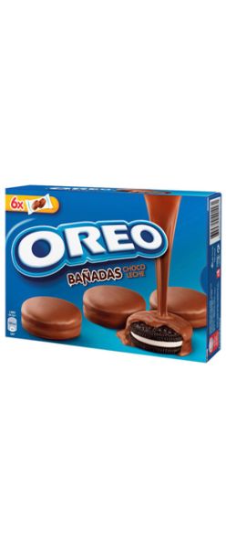 Kakaviniai sausainiai 38% su vanilės skonio kremo įdaru 19%, aplieti šokoladu 43%. Grynasis kiekis 246 g.
