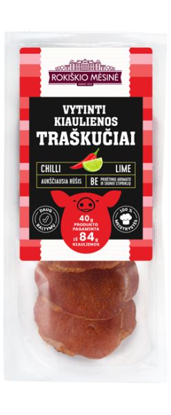 Rokiškio Mėsinė Vytinti kiaulienos traškučiai čili ir laimo skonio 40 g