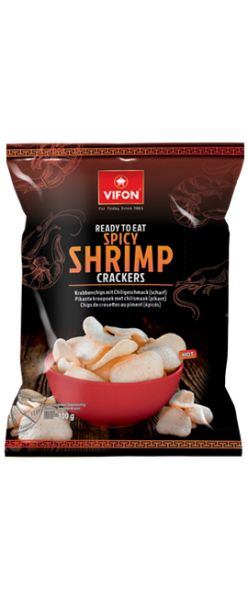 Vifon krevečių traškučiai, aštraus aitriųjų paprikų skonio. Grynasis kiekis 100 g.