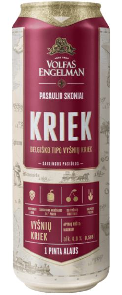 Volfas Engelman Pasaulio skoniai Kriek – gaivus vyšnių stiliaus alus, įkvėptas belgiškos Kriek tradicijos. Šis alus išsiskiria natūraliu vaisiškumu, lengvu saldumu ir švariu, gaiviu charakteriu. Verdant naudojami vyšnių sultys ir švelnus salyklas, kurie sukuria harmoningą, lengvai geriamą skonio profilį.