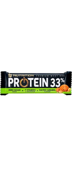 Sūrios karamelės dengtas proteino batonėlis praturtintas vitaminais ir magniu. Su saldikliais.
