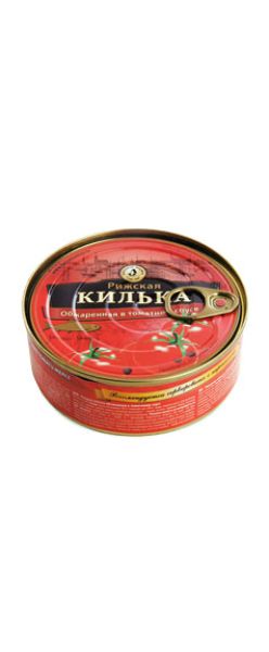Keptos kilkės pomidorų padaže. Sterilizuoti žuvies konservai. Grynasis kiekis 240 g. Grynasis žuvies kiekis 168 g. Sužvejota Baltijos jūroje (FAO 27 III d).