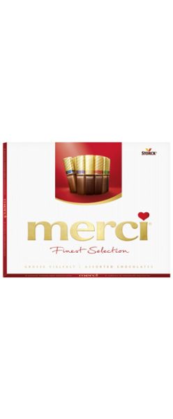 Šokoladinių saldainių rinkinys MERCI. Grynasis kiekis 250 g.